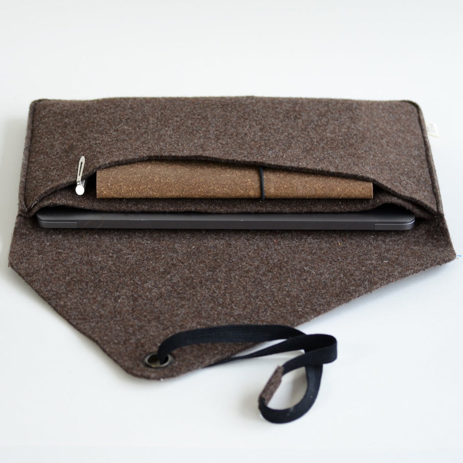 This sustainable laptop sleeve / sustainable tablet sleeve transforms your electronics into a stylish accessory. You can put your notebook, Apple pencil and other supplies in the front pocket. This way, everything you need is in one place and your office supplies remain protected. The soft wool felt of this sustainable laptop sleeve protects your laptop/tablet from scratches, weighs almost nothing and is water-repellent. In addition, the wool felt consists entirely of recycled materials. This way you can protect your laptop/tablet from scratches and dents, without losing sight of the environment.