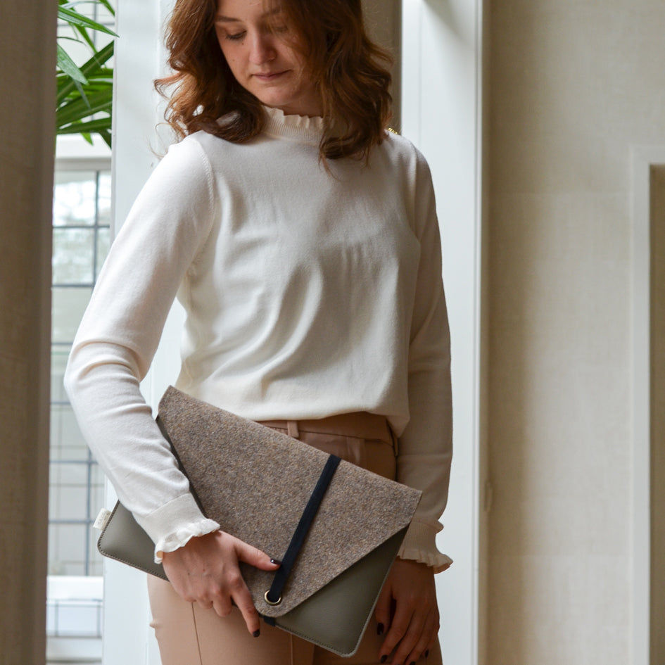 This sustainable laptop and tablet sleeve transforms your electronics into a stylish accessory. You can store your notebook, Apple Pencil and other supplies in the front pocket. This way, everything you need is in one place and your office supplies are protected. The soft wool felt of the sleeve protects your laptop/tablet from scratches, weighs almost nothing and is water-repellent. In addition, the wool felt consists entirely of recycled materials. This way, you can protect your laptop/tablet from scratches and dents without losing sight of the environment.
