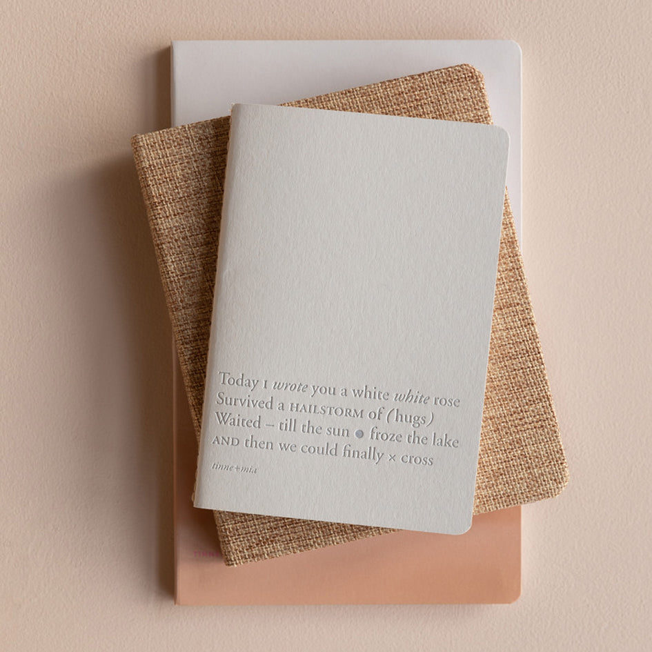 This A6 notebook (A6 notebook) is the perfect companion for on the go! With its handy size, it fits easily in your bag or pocket, so you can take notes anytime, anywhere. Printed on Japanese FSC paper, this notebook is a sustainable choice. The interior, with a soft gray dotted grid, offers a clear layout for all your thoughts and ideas. The dots make this notebook also ideal as a bullet journal ! The off-white cover, embellished with a sweet poem in matte silver foil , adds a touch of charm to this practical notebook with the beautiful name: Cloud Dancer!